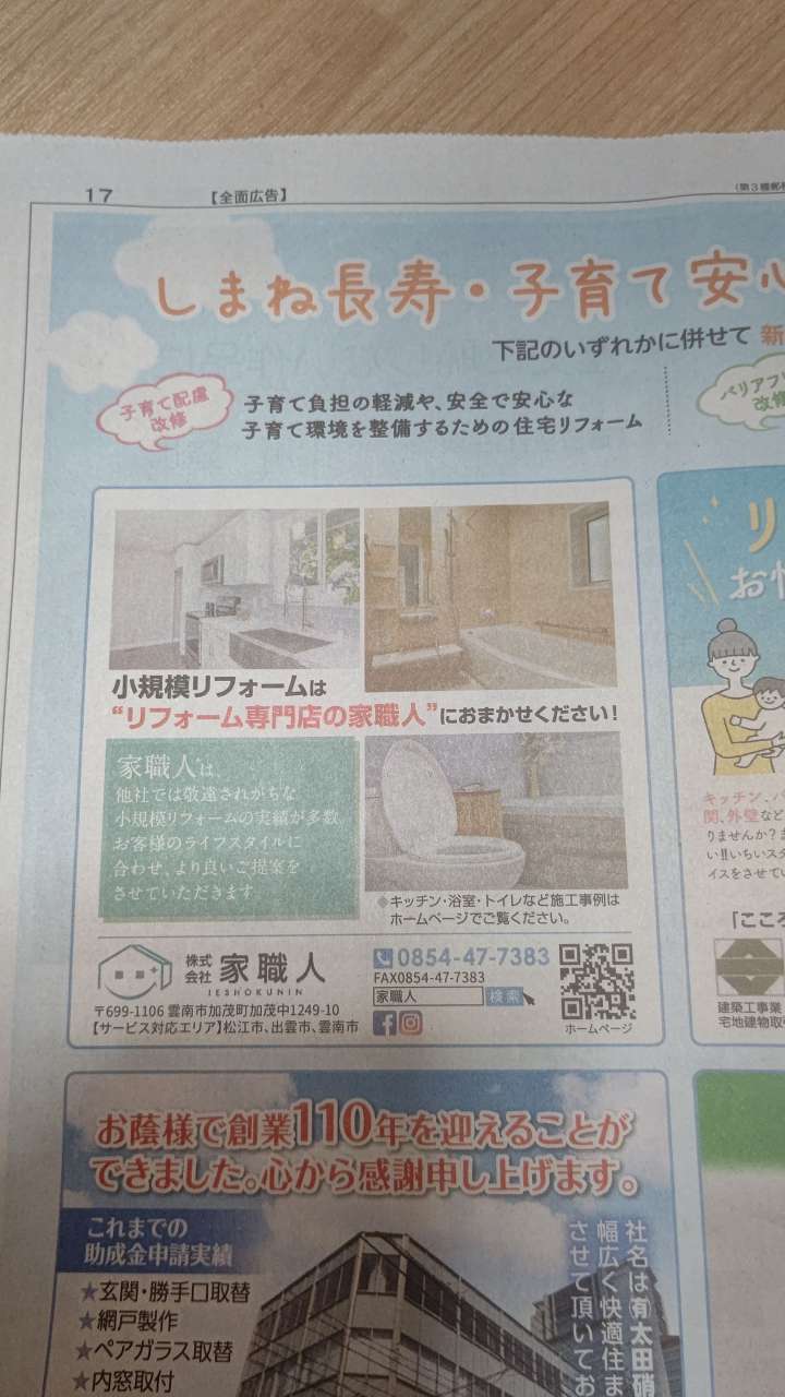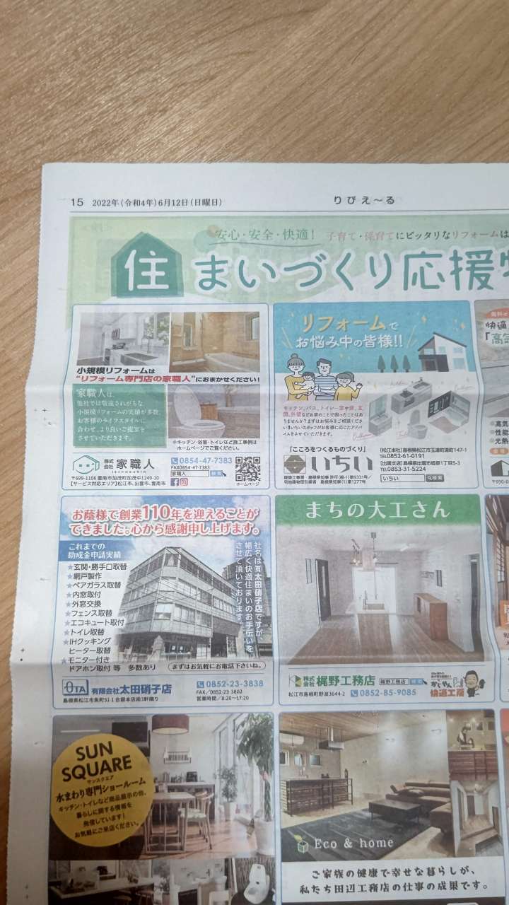 ↓こちらは山陰に配布されているリビエールという情報誌になります。こちらにも掲載されております(^^♪