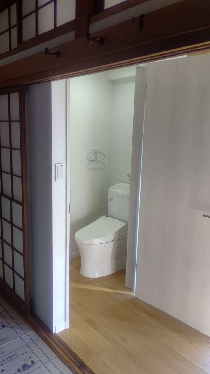 トイレ新設や縁側、廊下のリフォームなどもありました。今回のリフォームのポイントはシロアリ被害がありましたのでシロアリ対策といつでも床下が点検できるように点検口を設けました。トイレの位置も排水や給水の場所、トイレを造作する際の確保できる広さなど総合的にみて縁側の1部を利用して設置となりました。