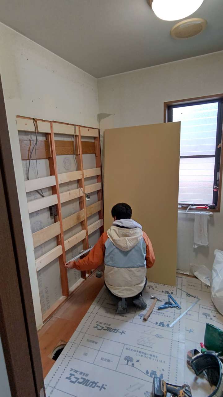 あとはクロスを貼ってから洗面台などの設備を取り付けて完成です。