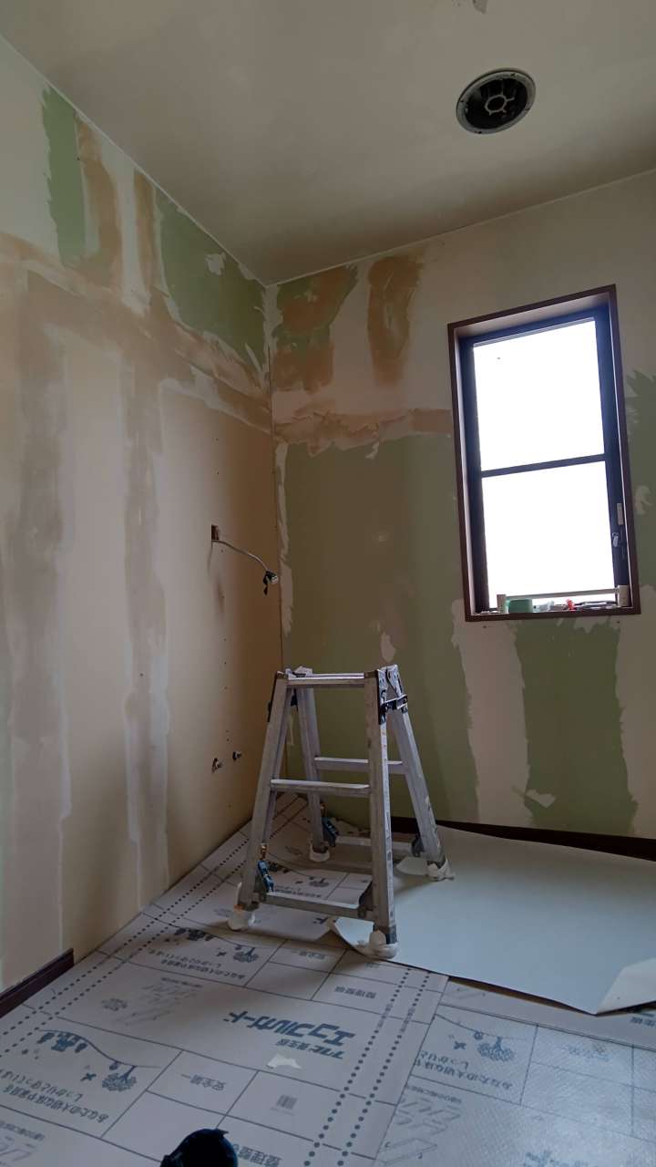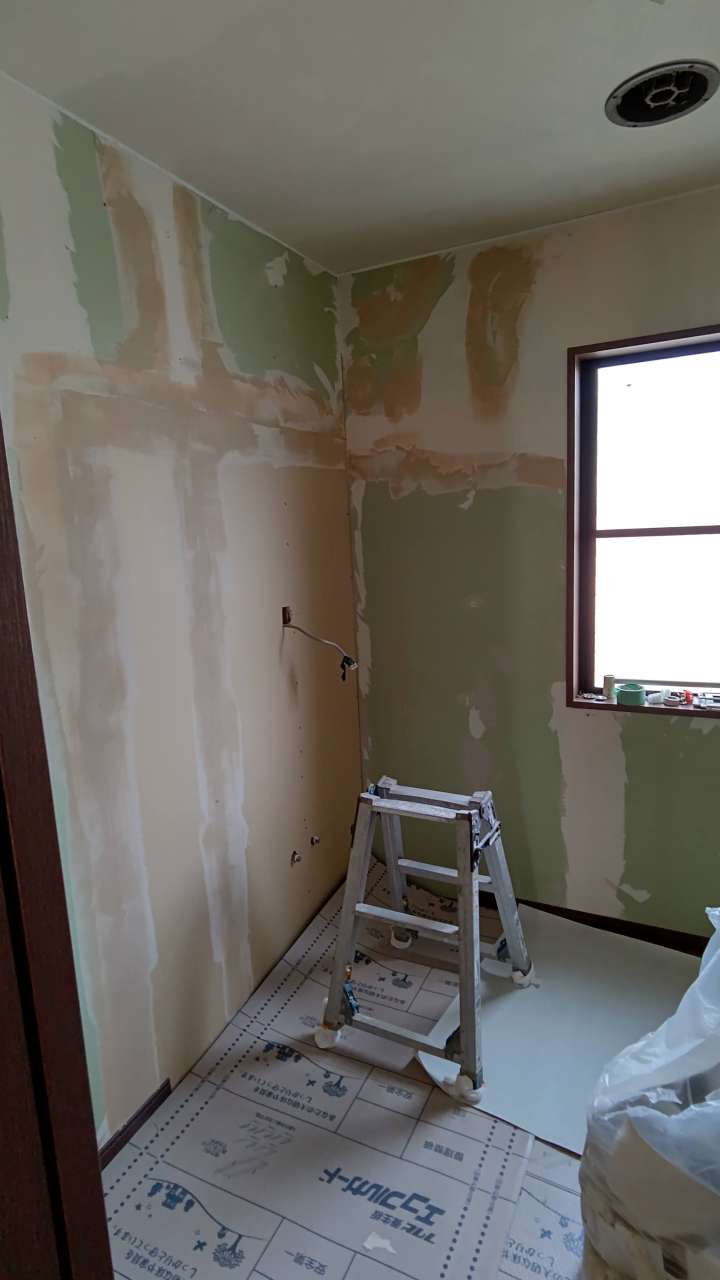 そのあとは内装屋さんにクロスがきれいに貼れるように下地処理をしてもらっています。